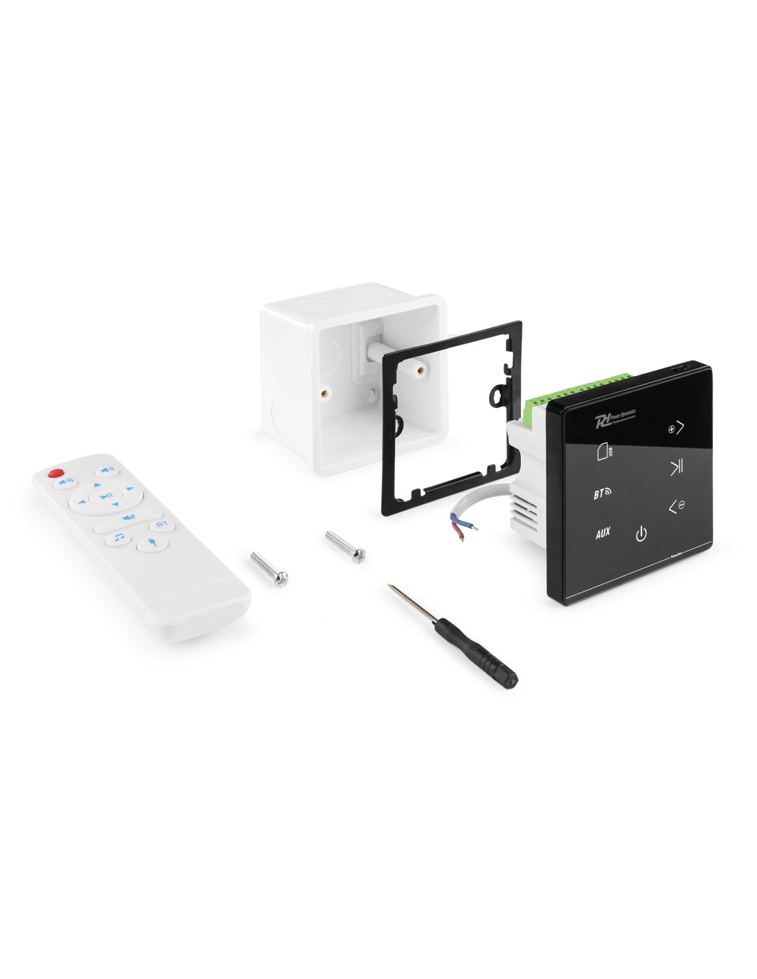 La serie Powerline son sistemas musicales para empotrar en pared con amplificador integrado y reproductor de música. Su elegante acabado con paneles táctiles ofrece un look minimalista, por lo que tu sonido se escucha, pero no se ve. Todos los cables y conexiones quedan seguros y escondidos en la caja de pared para evitar peligros. Disfruta de tu música desde varias fuentes como BT Streaming, USB, microSD card y AUX con nivel línea. La función BT streaming permite conectar directamente con tu smartphone, tableta, portátil, etc. La pantalla táctil controla todos los aspectos de tu sistema; es tocar y funcionar. También puedes usar el mando a distancia incluido.