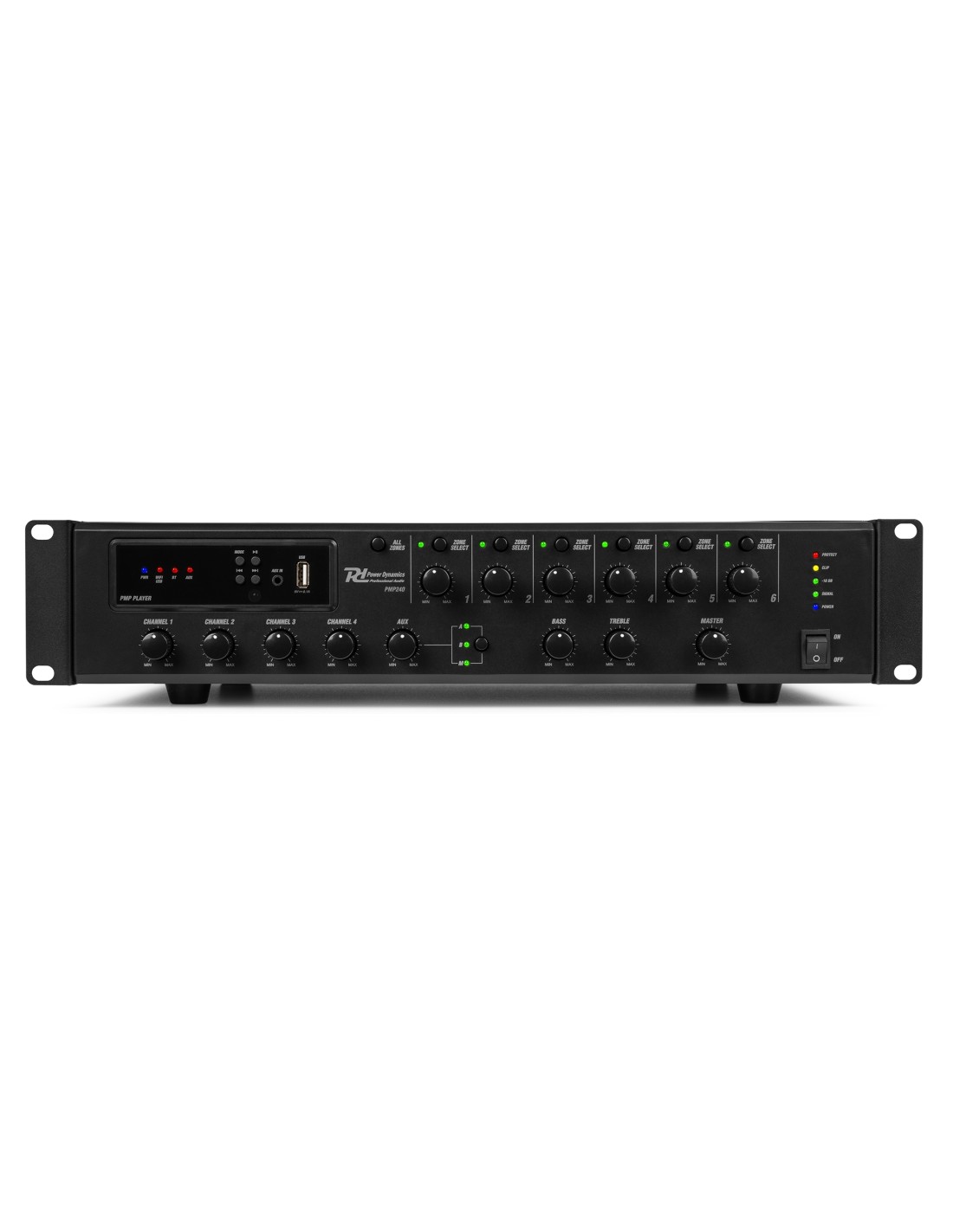 El amplificador mezclador de 6 zonas PMP es un sistema de megafonía todo en uno adecuado para diversos entornos, como tiendas, fábricas, escuelas y hospitales. Su diseño y su rendimiento excepcional hacen de este amplificador ideal para transmitir mensajes y música de fondo, al tiempo que ofrece una adaptabilidad perfecta y una confiabilidad inigualable. Ya sea que necesite una salida de 70 V/100 V o 4-16 ohmios, o prioridad de micrófono/teléfono, esta serie proporciona la máxima flexibilidad. Además, el amplificador ofrece un sonido nítido y de alta calidad e incluye una función de prioridad, control de volumen, función de timbre y mucho más, lo que lo hace fácil de usar pero completo en funciones.