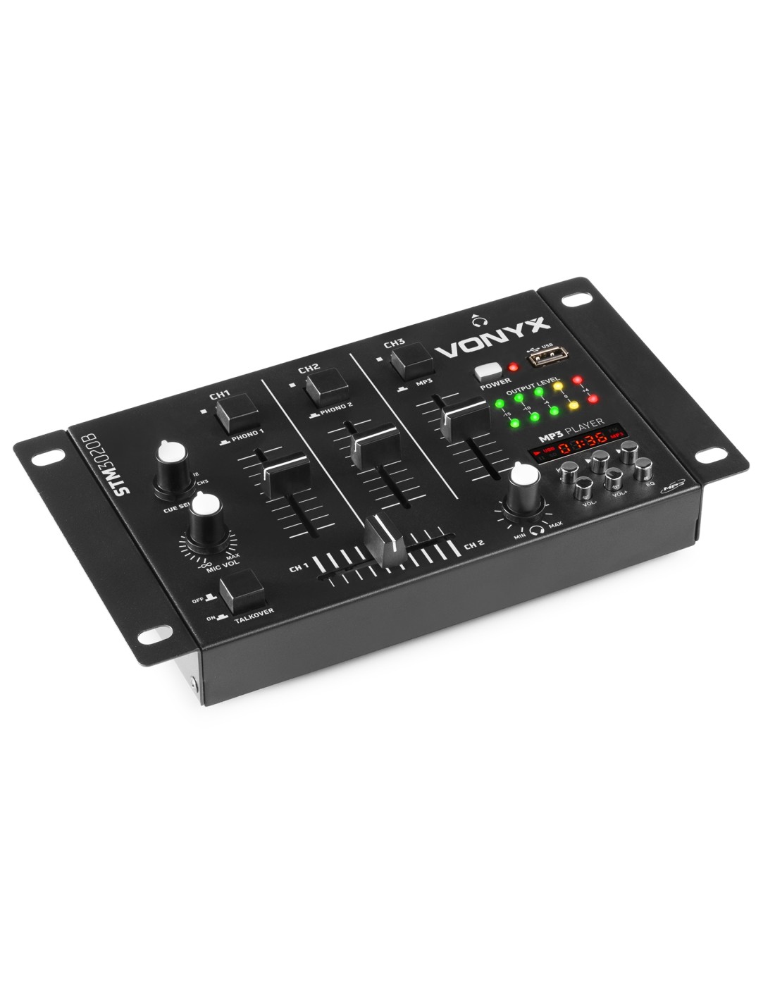 Mezclador de 6 canales con USB/MP3 para DJs principiantes. Ideal para aplicaciones de karaoke, aficionados del sonido y mezcla de bandas sonoras de video.