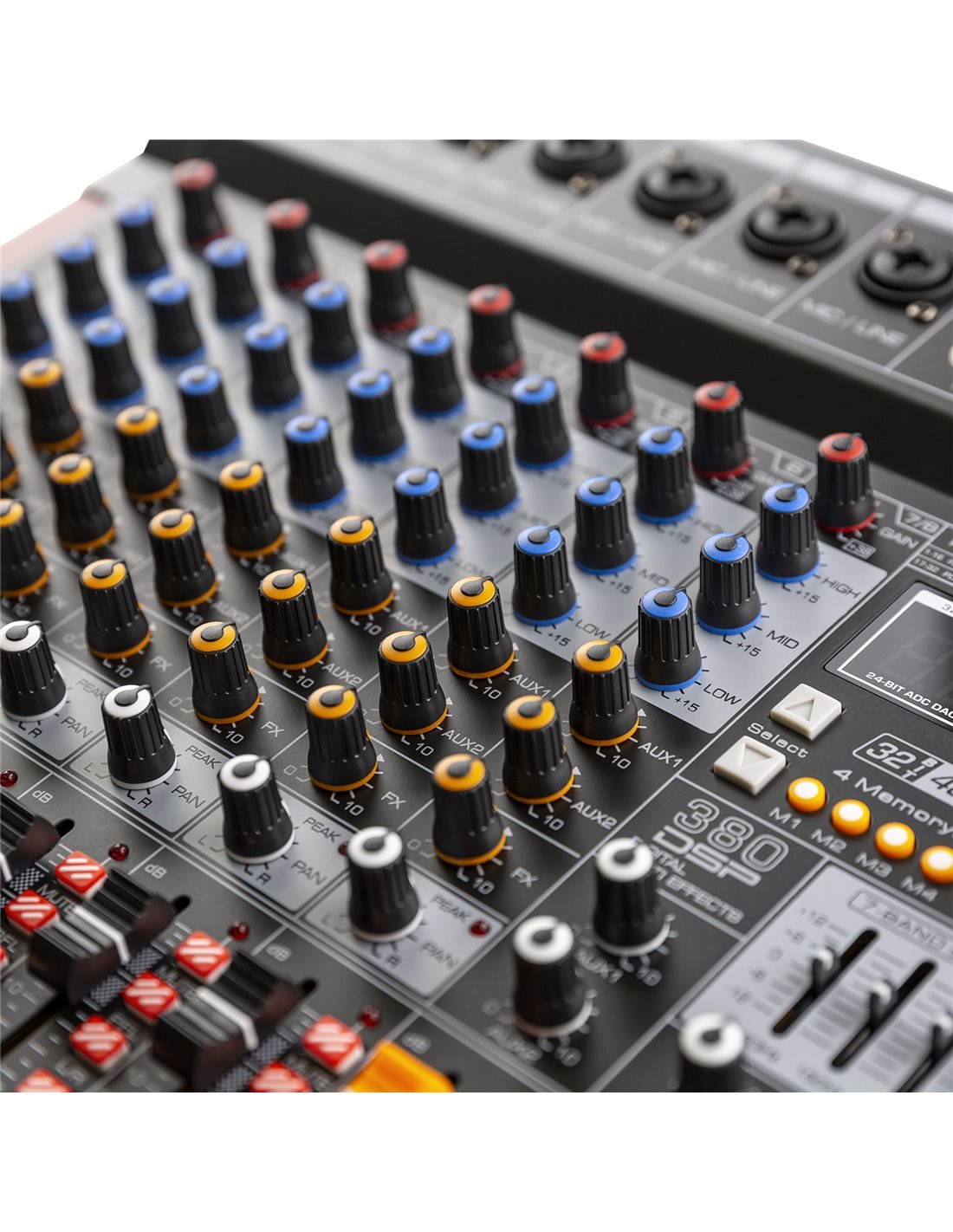La serie PDM-T es una serie de mezcladores de escenario equipados con un procesador de efectos DSP de 32 bits, ecualizador gráfico estéreo de 7 bandas, capacidad de transmisión BT y entrada/salida USB para una fácil conexión al ordenador para grabación de música, etc. También es posible utilizar la función de grabación con un solo clic para grabar fácilmente MP3 en una memoria USB. Cada canal tiene su propio control de ganancia con controles de agudos, medios y graves. Los preamplificadores de micrófono ofrecen alimentación phantom seleccionable de 48 V en todos los canales de micrófono. Los mezcladores PDM-T están diseñados para proporcionar capacidades de mezcla multicanal para bandas, músicos, ingenieros de sonido, conferencias, grabación en estudio y una variedad de otras aplicaciones de escenario en vivo.