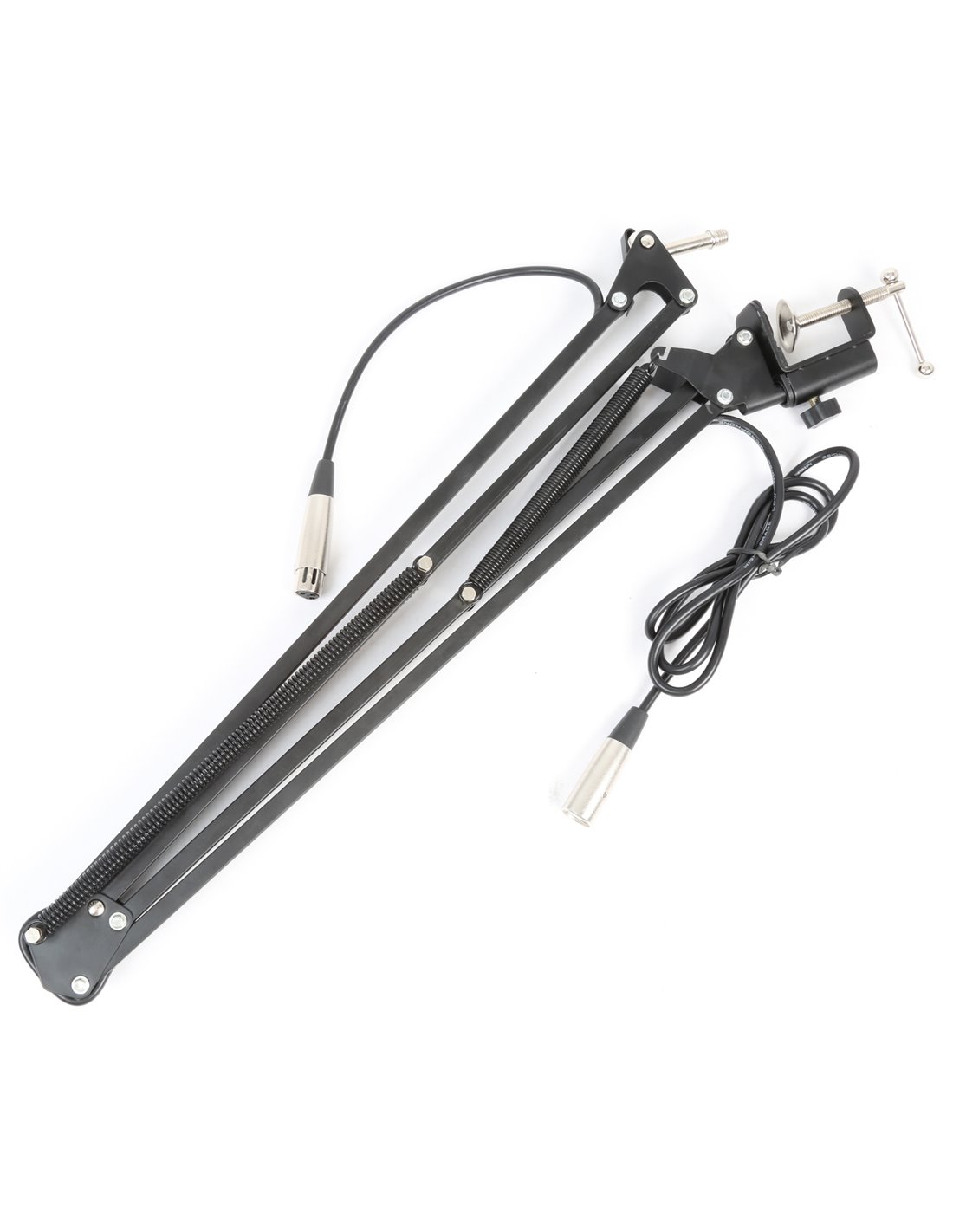 Este brazo soporte para estudio, es ideal para sujetar su microfono de condensador. El brazo es totalmente ajustable en altura y facil de sujetar a la mesa de trabajo. El cable interior de conexion XLR permite llevar su señal sin molestias.