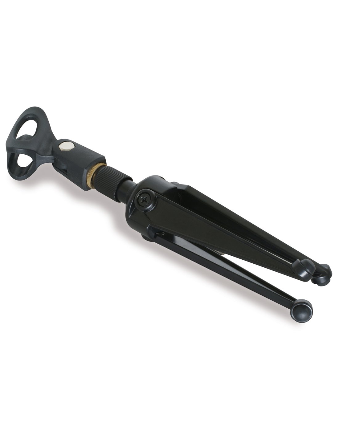 Soporte de micro con tres patas plegables para sobremesa o instrumentos muy cercanos al suelo. Pinza de plastico con adaptador de 3/8" y 5/8". Util para la mayoria de microfonos del mercado.