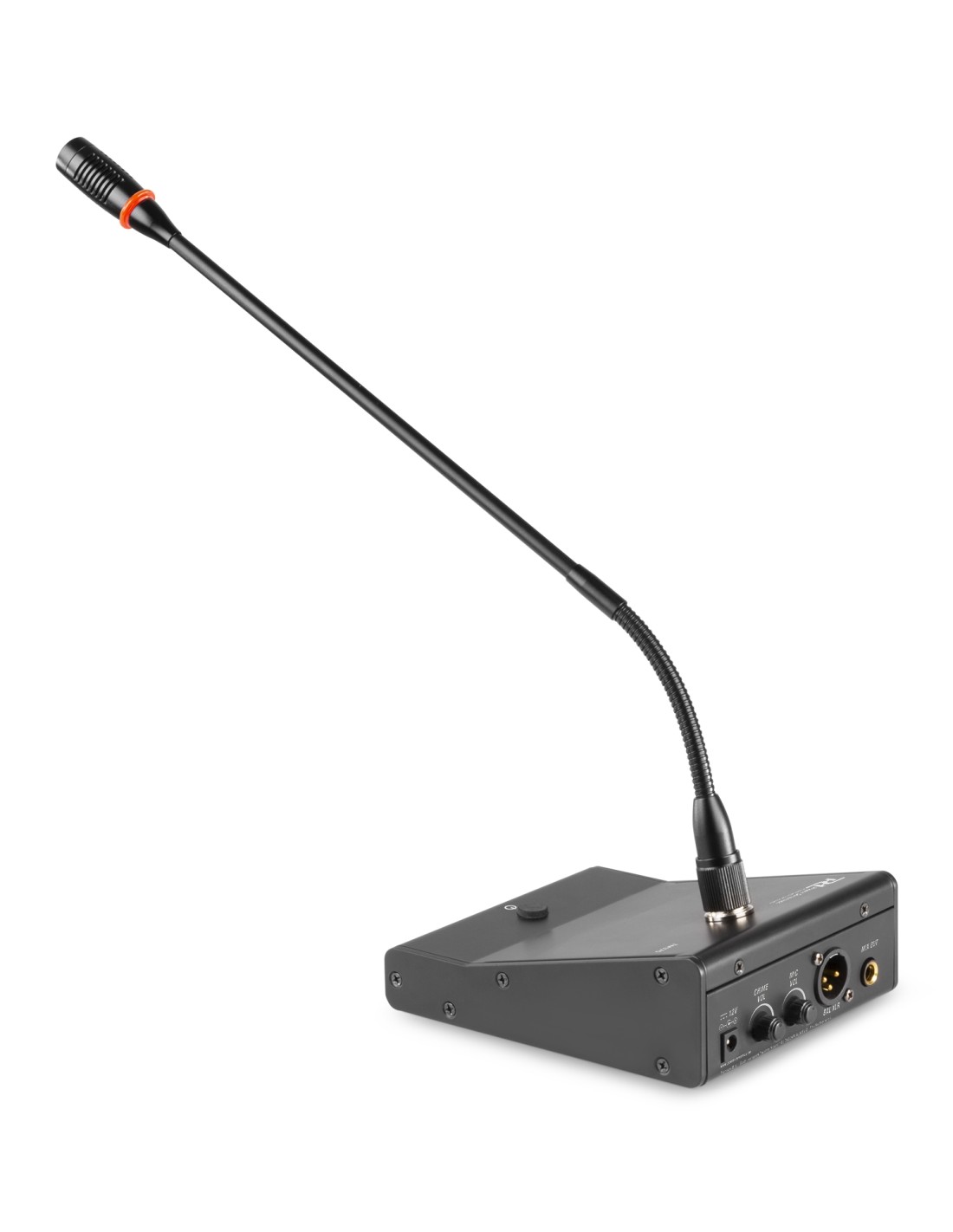 El TM370 es un micrófono de sobremesa con cuello de cisne util para todo tipo de conferencias y meetings. Simplemente conecte el micrófono a la base via XLR y para la conexión de salida utilice el XLR posterior. Este pude conectarse directamente a un amplificador o mezclador. Este práctico modelo puede activarse pulsando el botón y el aro LED alrededor del micro se encenderá indicando “en el aire”. El volumen del micro y el avisador se ajustan en la parte posterior.