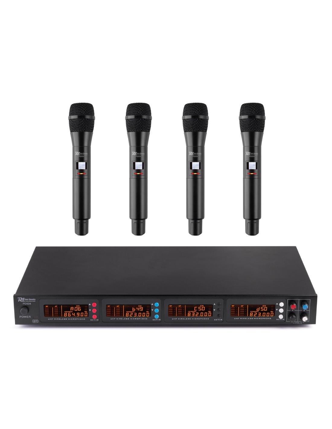 Este sistema inalambrico UHF de microfonia con un impresionante sonido Power Dynamics incorpora 4 microfonos inalambricos que pueden funcionar a la vez. Cada microfono lleva un codigo para identificar facilmente de quien es cada micro facilitando el trabajo del ingeniero de sonido. Excelente calidad para vocalistas y aplicaciones PA.