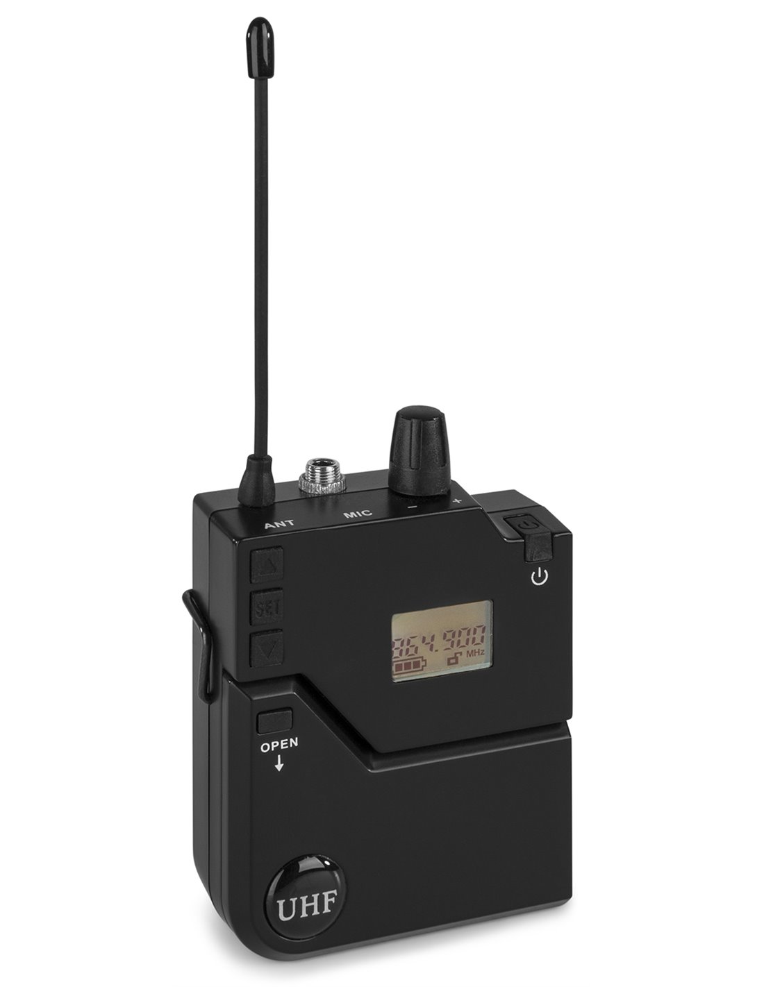 Petaca transmisora para inalambricos de la serie PD632 UHF. Equipada con sistema IR para seleccion de canal. Ideal para aplicaciones manos libres, vocaistas, presentadores, etc. Incluye micro de solapa y micro de cabeza en color piel.