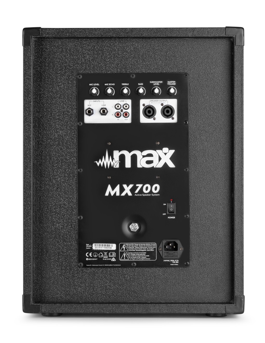 El MX700 es un conjunto ideal de sonido diseñado para ofrecer la máxima calidad sonora y con todas las características. El subwoofer de 12” ofrece 400W de graves y se complementa perfectamente con los dos satélites de dos vías de 2x 150W. El MX700 es genial para disco móvil, karaoke, shows en ruta, presentaciones, etc.