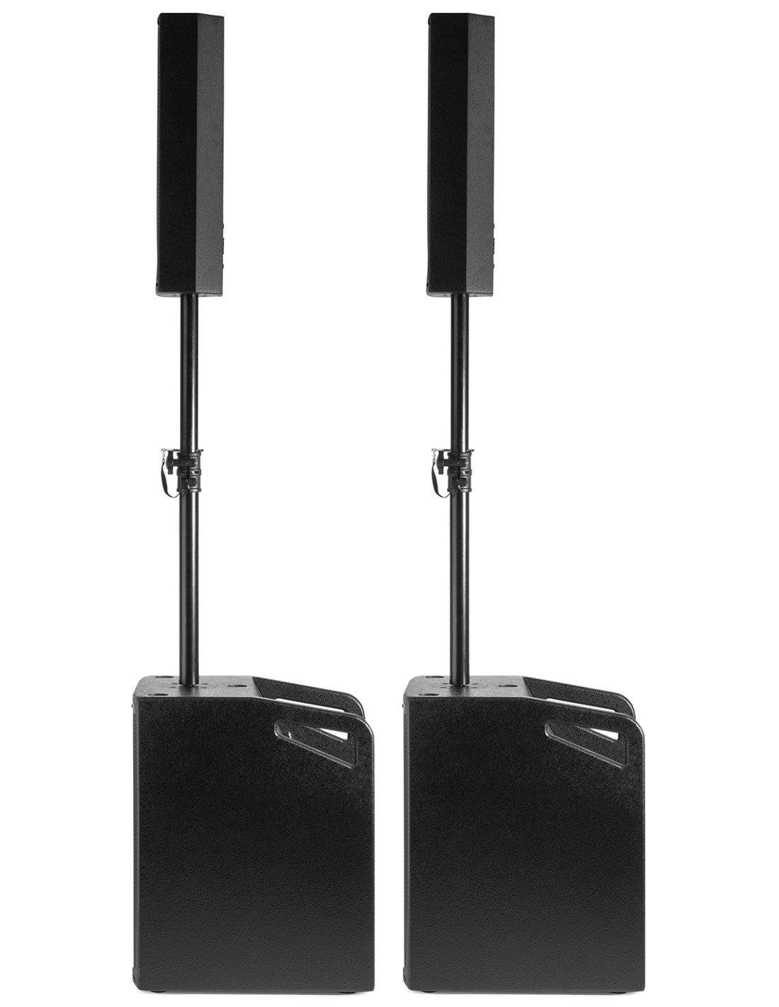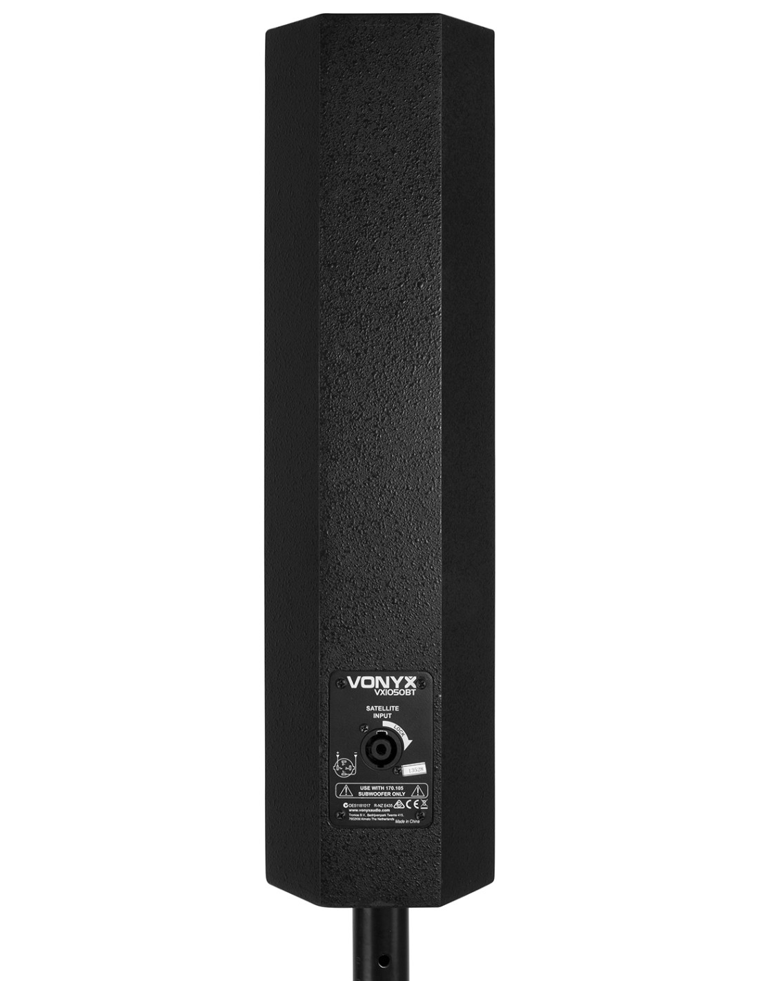 El VX1050BT es un conjunto completo de bafles plug & play. Todo lo necesario se suministra en este conjunto. La potencia se encuentra en uno de los subwoofer de 12" que contiene el amplificador, ambos satelites y el subwoofer pasivo se conectan a esta unidad. El receptor integrado de BT permite hacer streaming directo de tu musica desde tu smartphone o puedes usar el reproductor integrado de MP3 a traves de USB y SD.