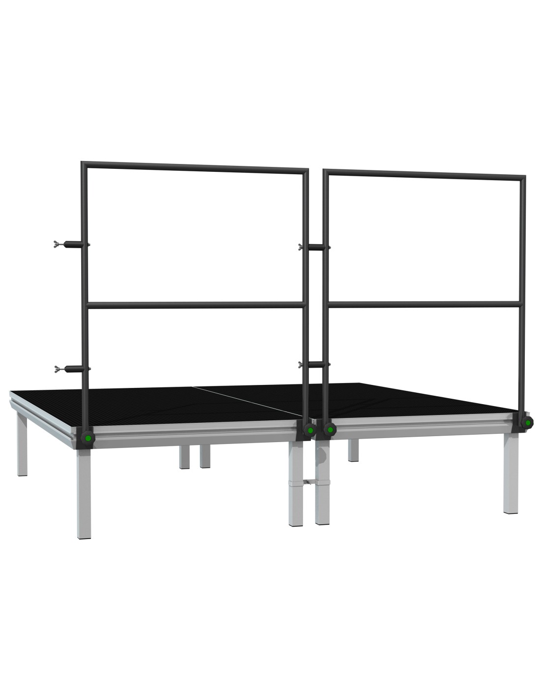 Barandilla para tarimas Deck750 con 2 conectores que permiten una rapida fijacion. La barandilla incorpora una barra intermedia para evitar caida de objeto bajos por ejemplo flight cases. Varias barandillas pueden juntarse gracias a sus conectores de 2 puntos para una mayor estabilidad.