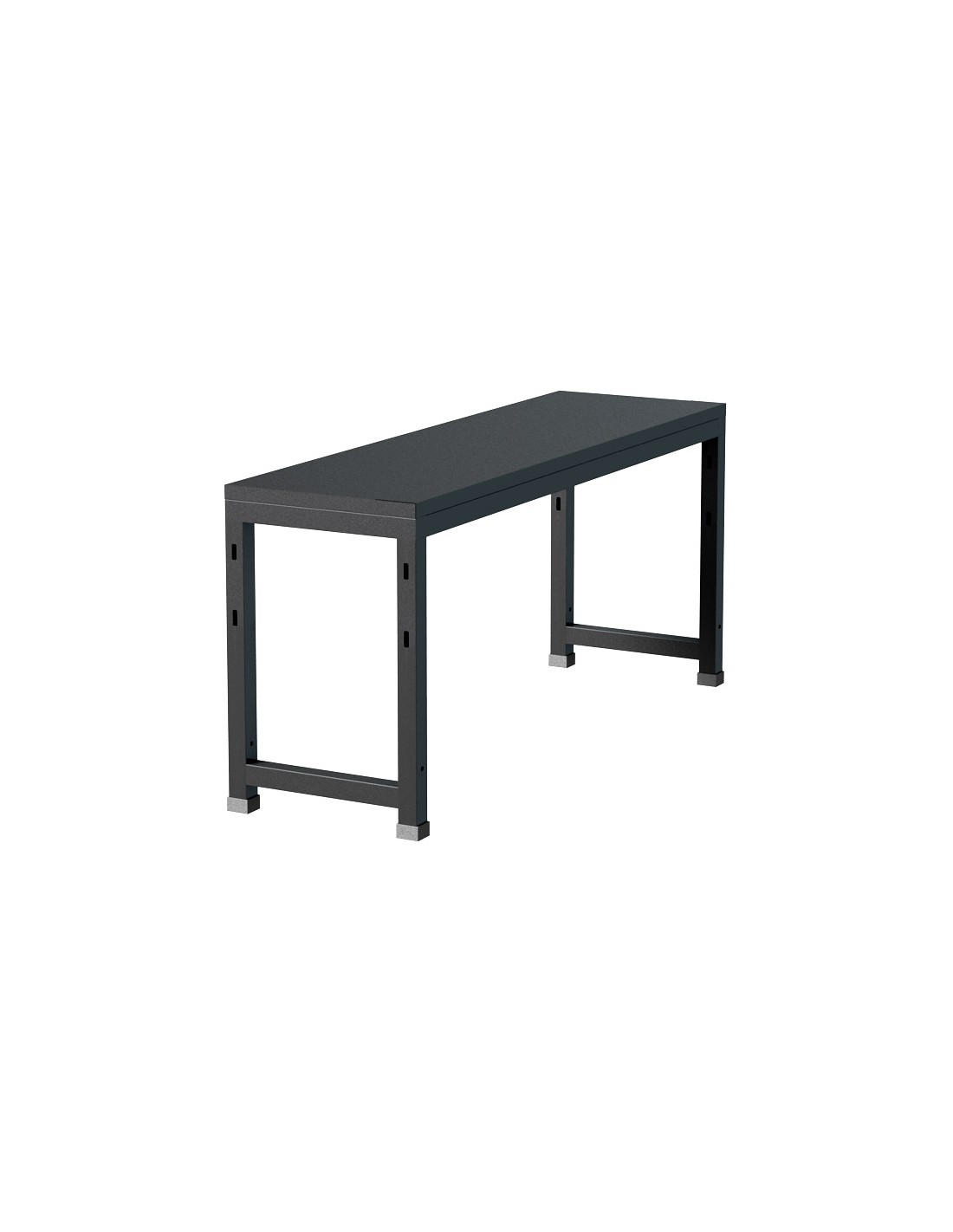 Escalera modular fija con cuatro alturas disponibles. La escalera tiene patas ajustables para posibilitar la conexion con tarimas no niveladas. La escalera tiene estructura de acero y los escalones son de madera con cobertor vinilico "Hexa" anti deslizante para asegurar maximo agarre permitiendo su uso en interior o exterior.