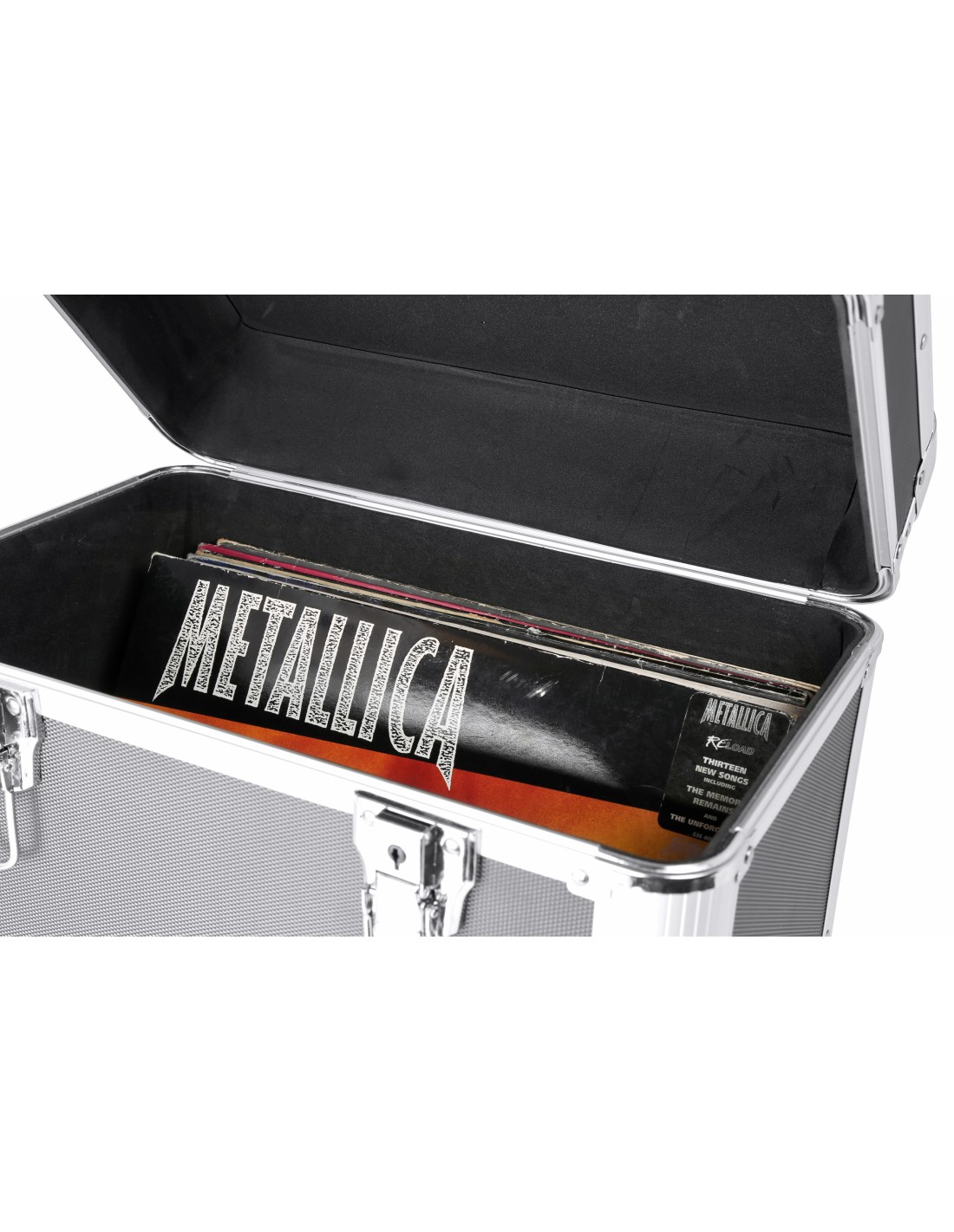 La RC80 permite el alojamiento de discos vinilo 12"/LPs en su corpartimento alcolchado interior. El exterior brillante incorpora tapa removible y cierres de mariposa. Su diseño con cuatro pies en la trasera y su asa suave, permite el apilamiento de varias unidades con seguridad.