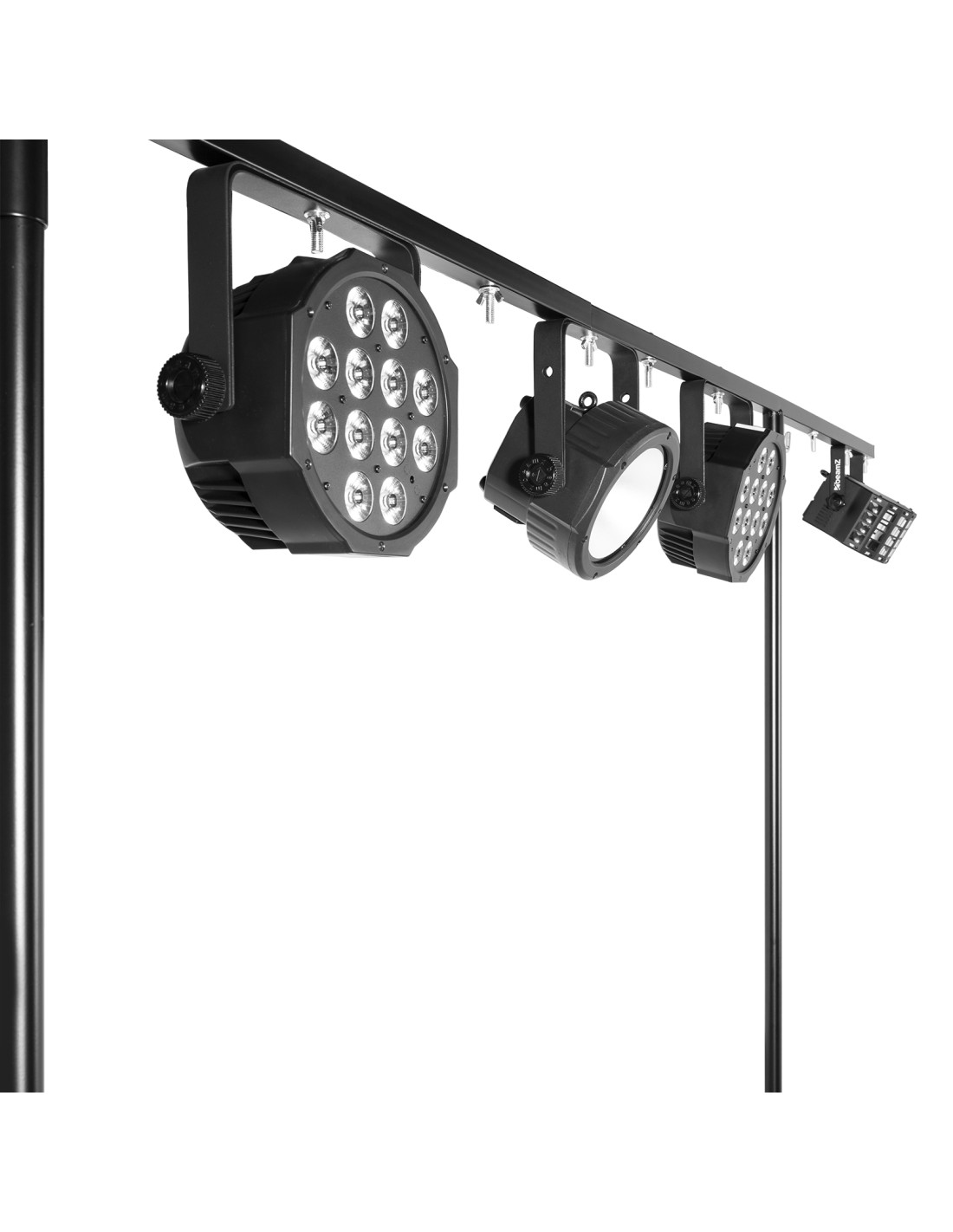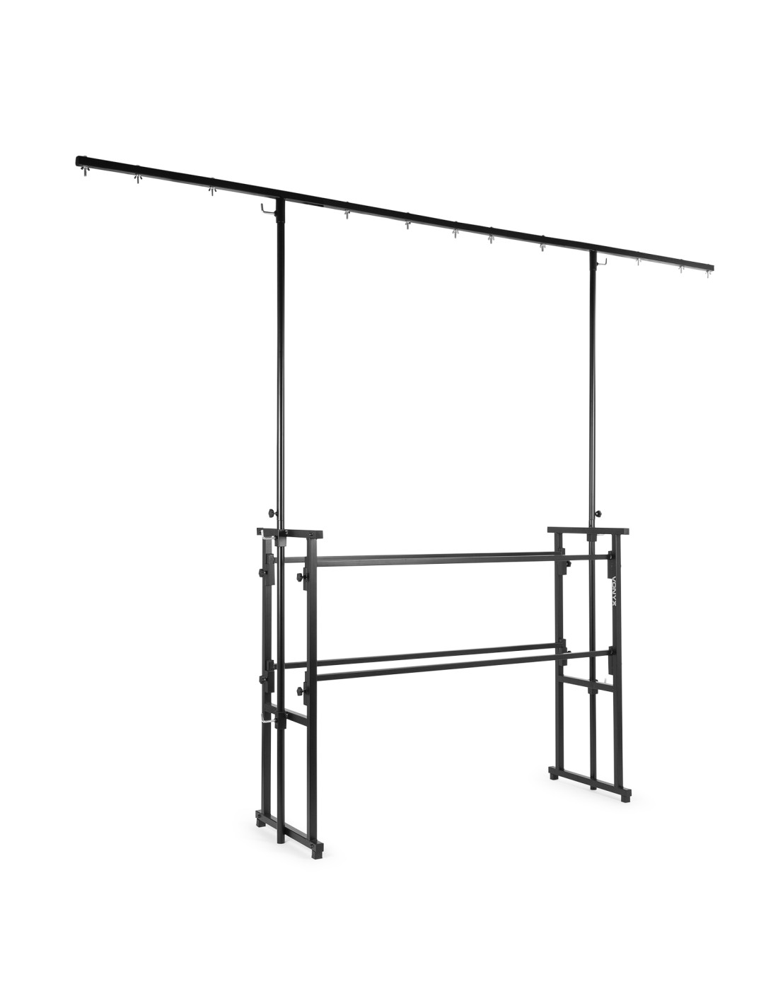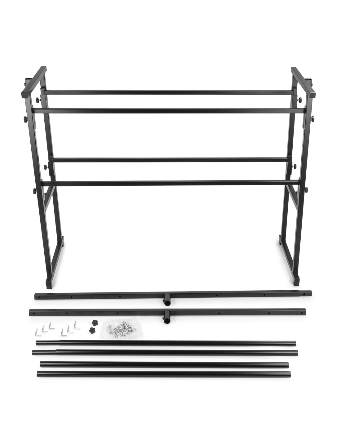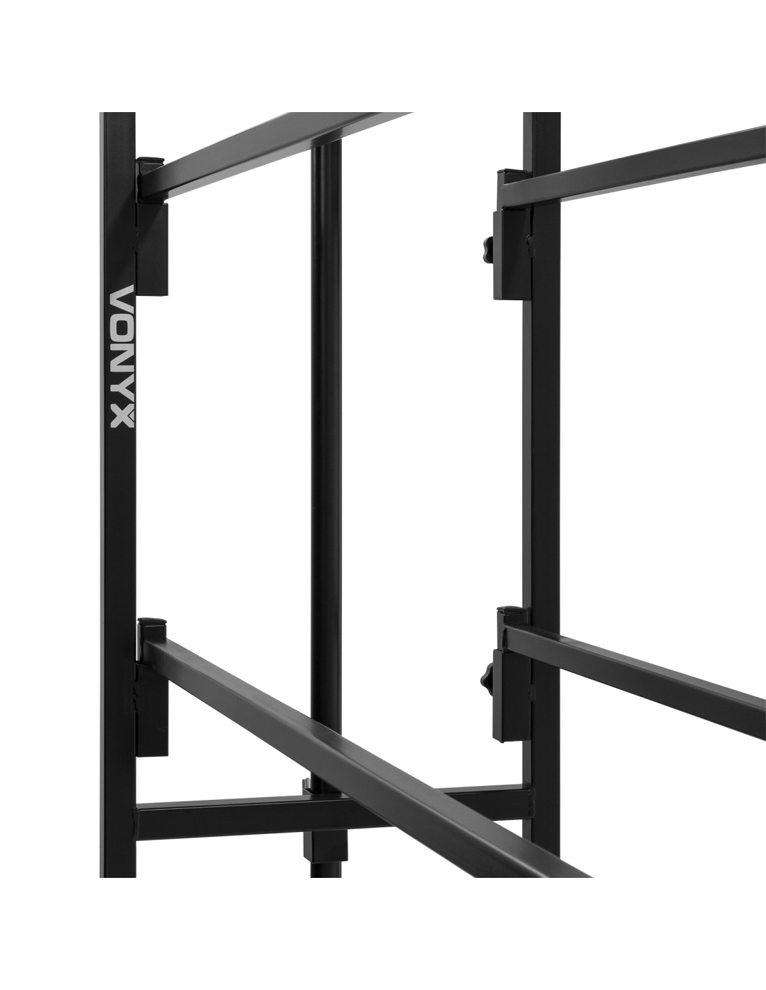 Este set para disco todo-en-uno permite colocar todo tu equipo facilmente. Facil de transportar y de montar. Los railes superiores estan a la altura ideal para colocar tu equipo de sonido dj. En los railes inferiores puedes colocar equipos accesorios como ecualizadores, etapas de potencia, etc. Las barras en T ajustables son perfectas para tus efectos de luces y lasers.