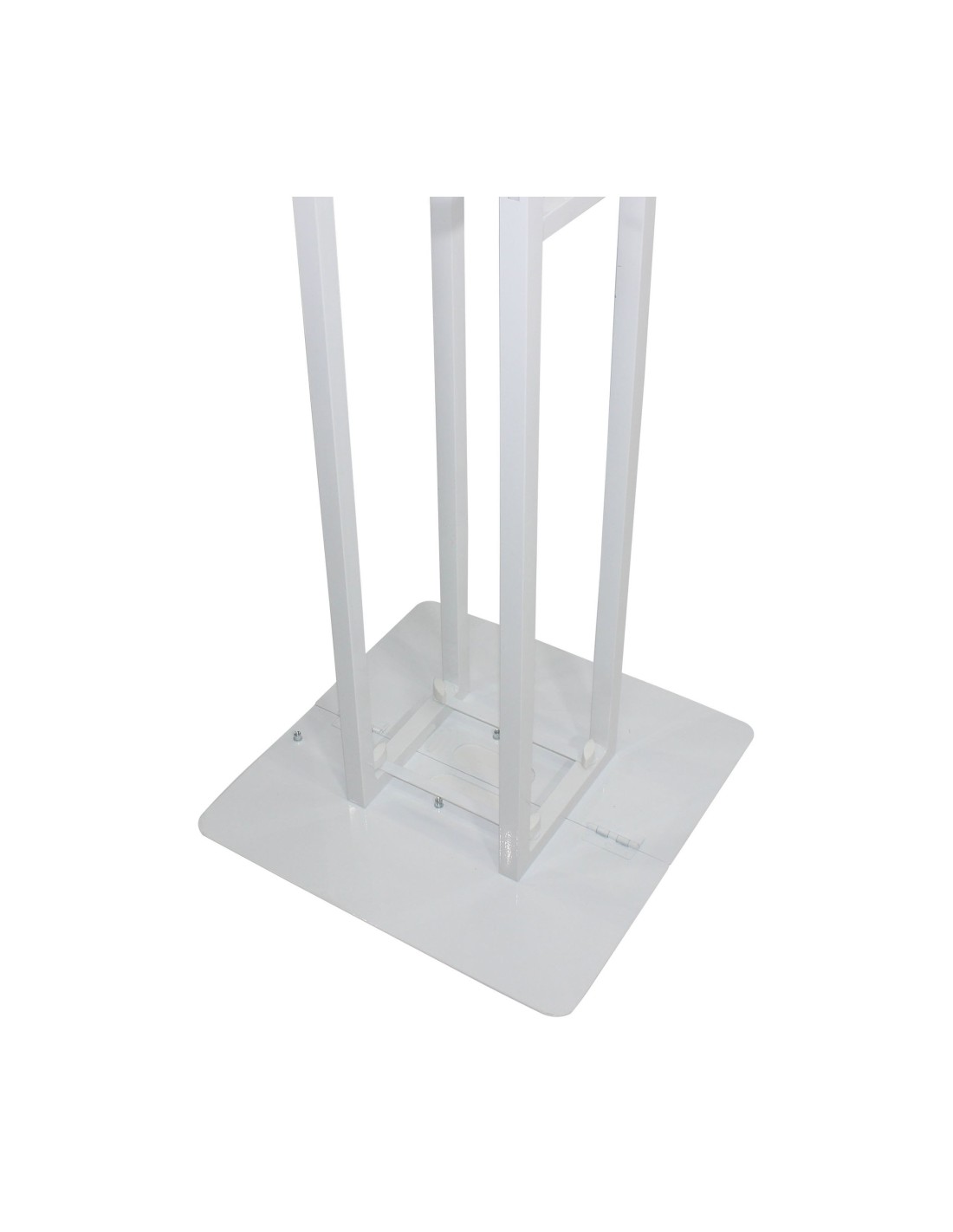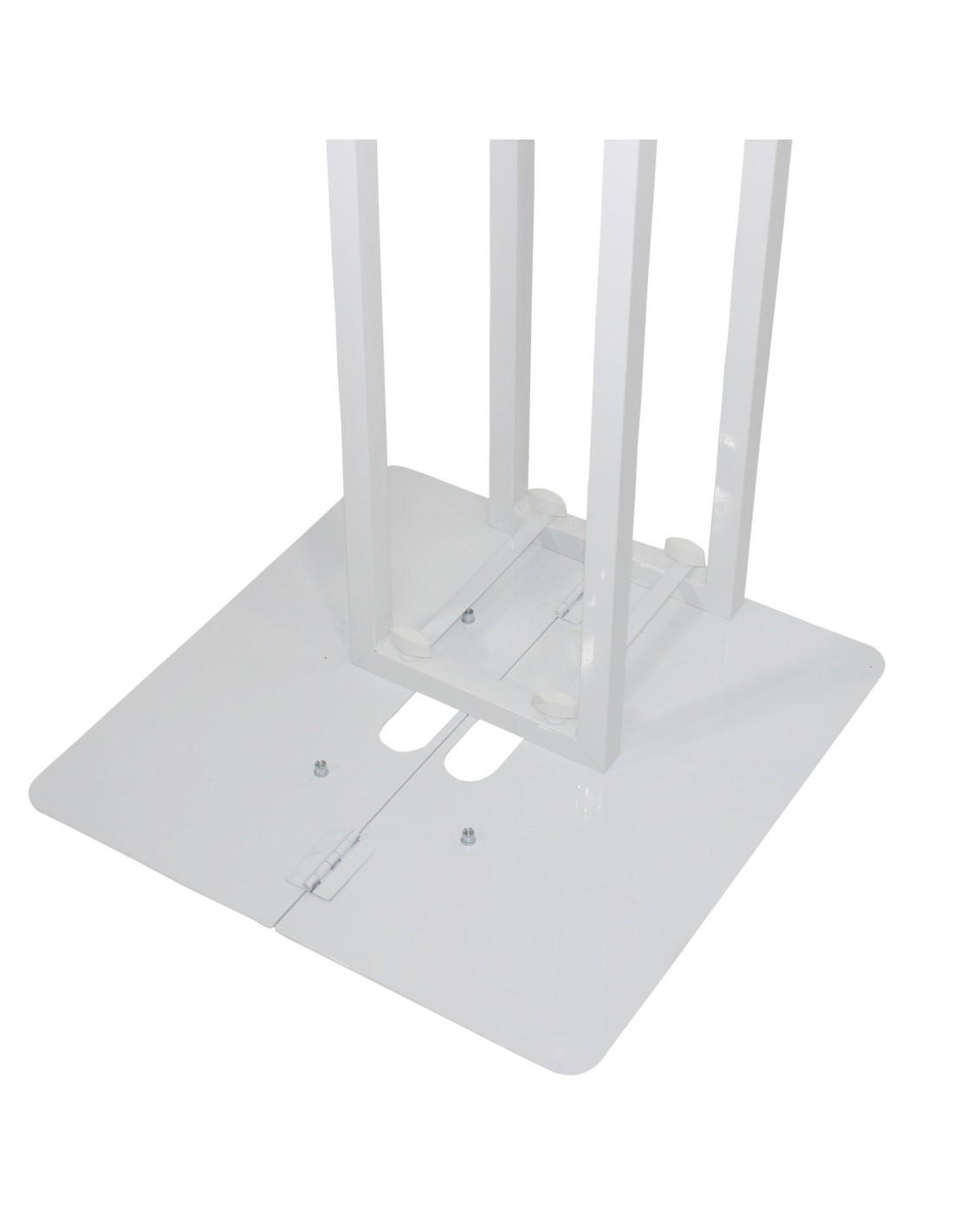 El DJP170 es un pedestal ajustable con placa base plegable para colocar efectos de luces y cabezas móviles, como bafles de PA, o cualquier unidad para exponer. A diferencia de otros pedestales ajustables que utilizan palomillas para cambiar la altura de la unidad, el DJP170 se ajusta en altura instantáneamente con el ajuste mecánico diseñado especialmente para Vonyx que libera los cuatro cierres a la vez, permitiendo que con una sola mano ajustemos la altura deseada. El pódium tiene un acabado en pintura de alta Resistencia y durabilidad. Una licra negra y otra blanca para cubrir las patas, bolsa de transporte y alfombrillas antideslizantes, vienen incluidas en el conjunto.