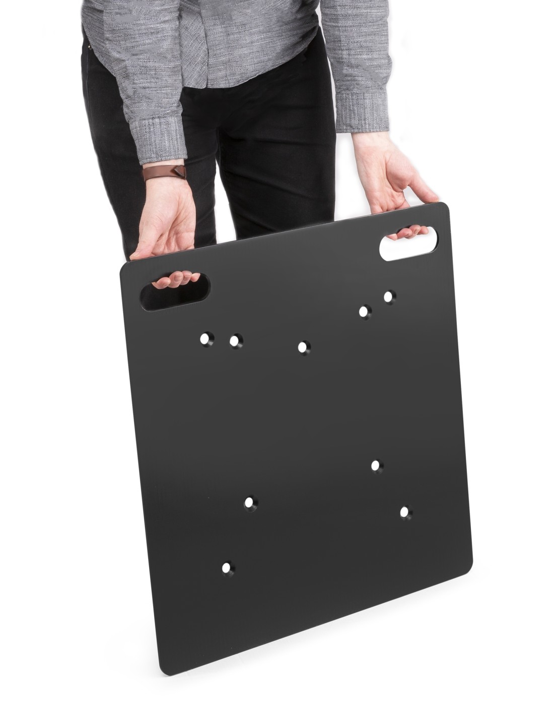 Las placas base universales UBP se pueden utilizar para sistemas de truss triangulares, cuadrados y rectangulares BeamZ. Cada placa tiene dos agarres reforzados, lo que los hace más fáciles de manejar.