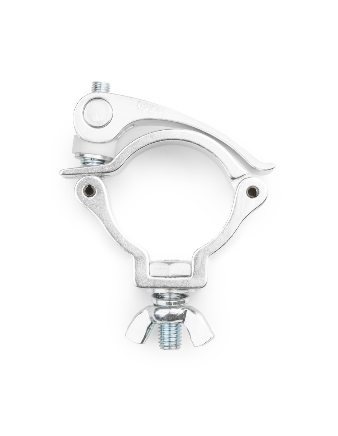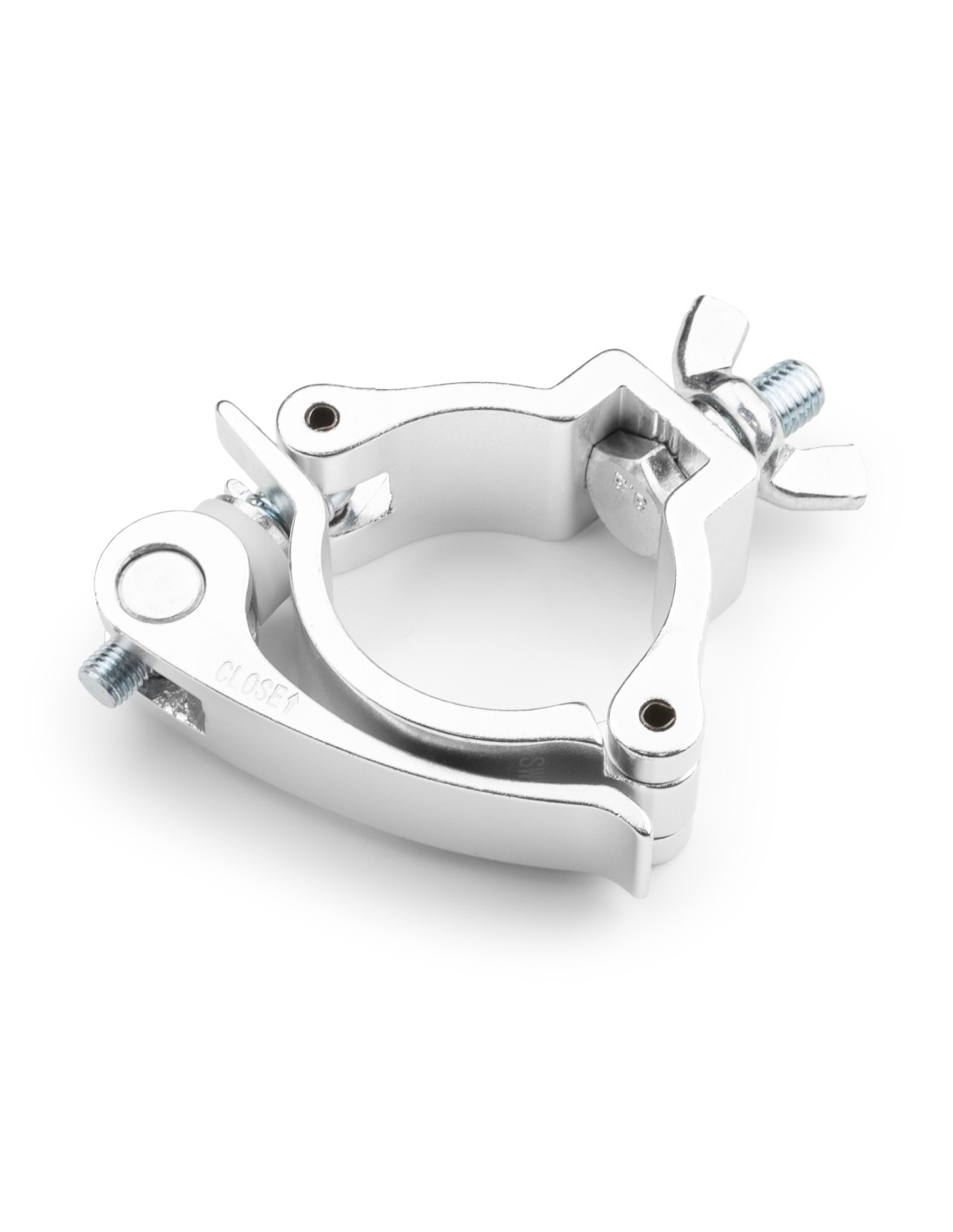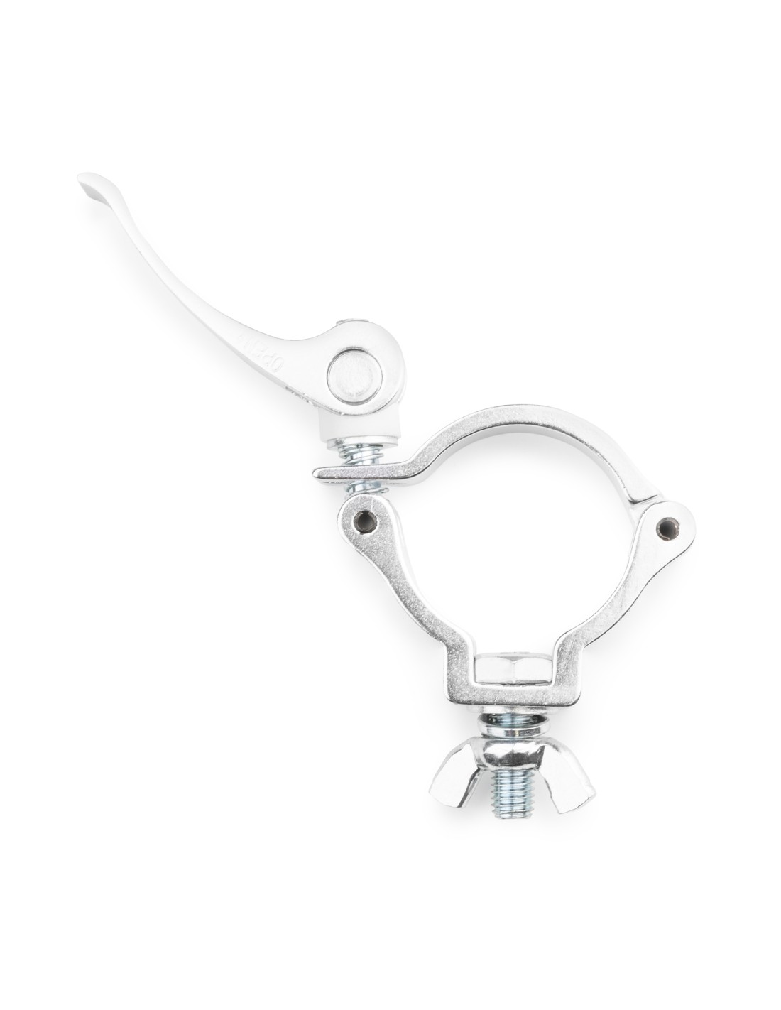 Garra ligera de aluminio compacto universal con abrazadera de liberación rápida para accesorios de montaje de tubería y truss. Construcción de aluminio de alta resistencia.