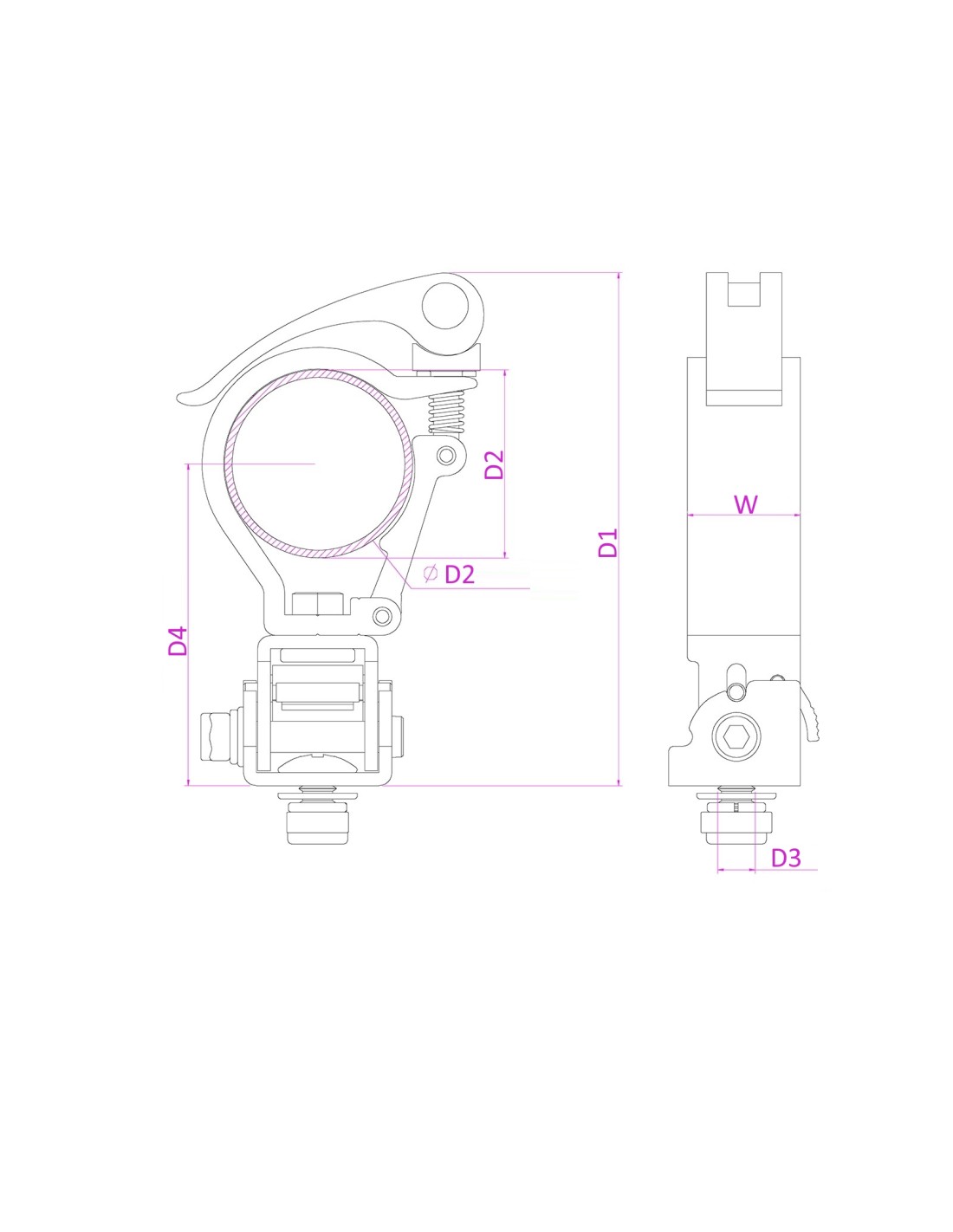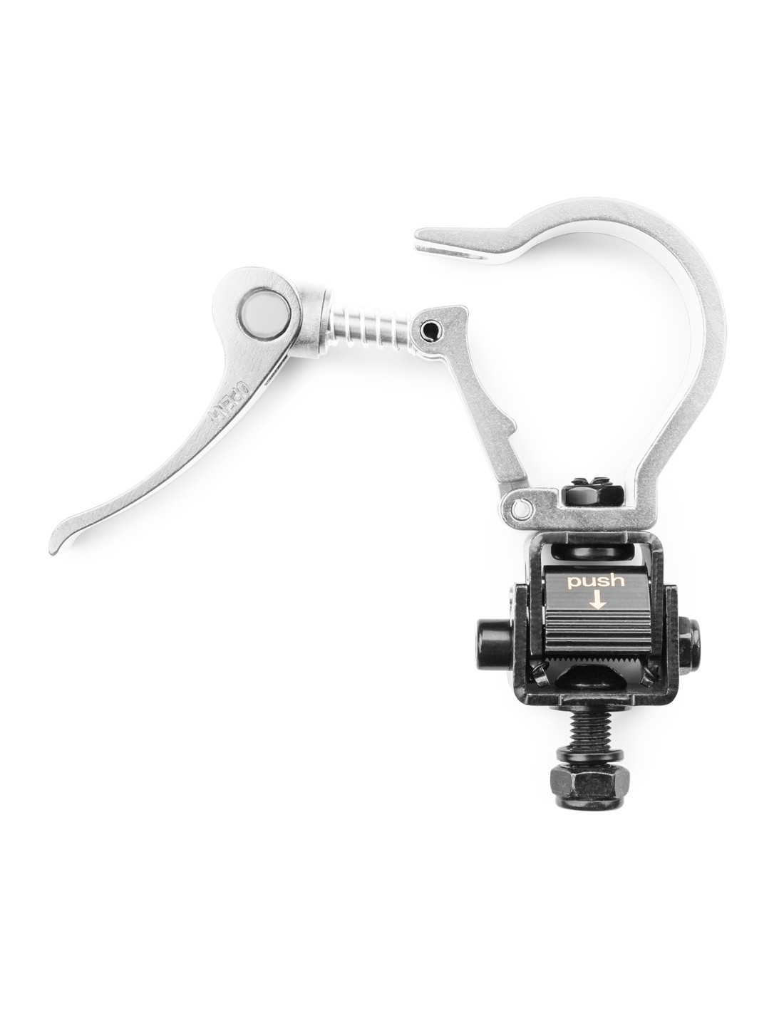Garra ligera de aluminio compacto universal para accesorios de montaje de tubería y truss. Facilita la inclinación del sistema de montaje y el transporte del efecto de luz en un estuche de transporte. Construcción de aluminio de alta resistencia.