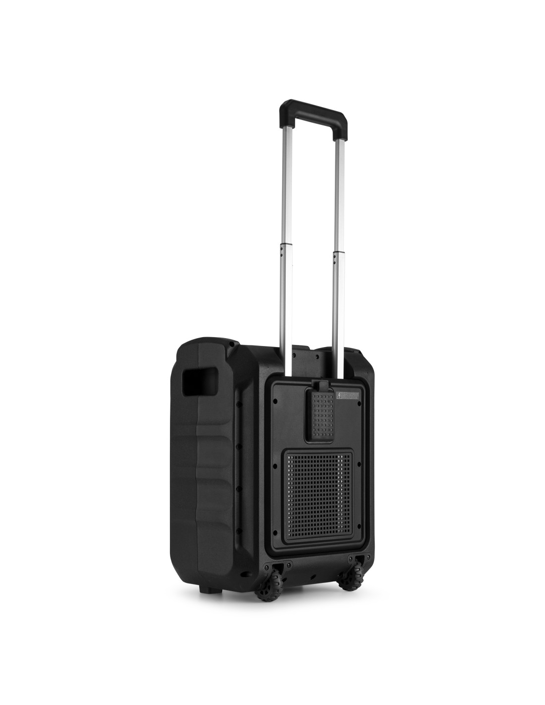 El SPLASH300 es un sistema de sonido todo en uno resistente a la intemperie especialmente diseñado para fiestas, actuaciones y megafonía. Portátil e inalámbrico, puede llevar este sistema de sonido trolley a cualquier lugar y reproducir música desde sus opciones de entrada, como USB o un dispositivo externo a través de AUX. La transmisión de música inalámbrica BT 5.0 le permite conectar y transmitir audio desde todos sus dispositivos favoritos, como teléfonos inteligentes, tabletas, portátiles, etc. Gracias a la batería recargable incorporada, el mango retráctil y las ruedas resistentes, este sistema de sonido es ideal para cualquier actividad al aire libre o también actividades de interior. Por ejemplo, entretenimiento en el hogar, karaoke, escuelas, seminarios, fitness o muchas otras aplicaciones. Lleva tu fiesta o evento al siguiente nivel con este sistema de sonido portátil SPLASH300 gracias a su sistema de refuerzo de bajos y su anillo LED que cambia de color en el frontal.
