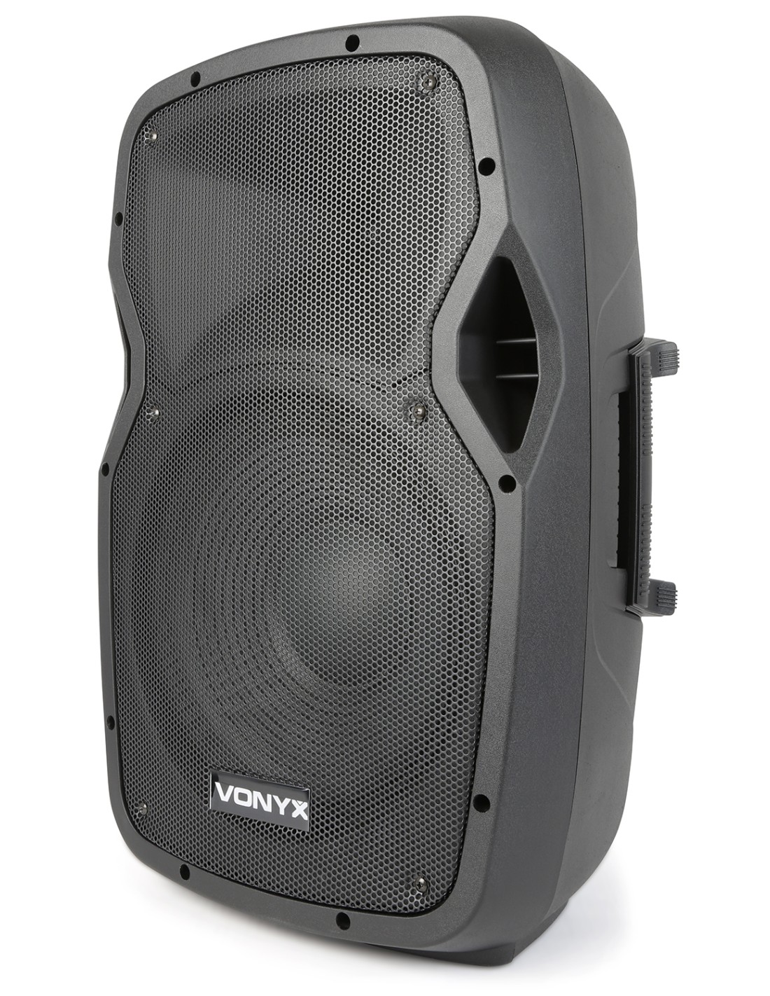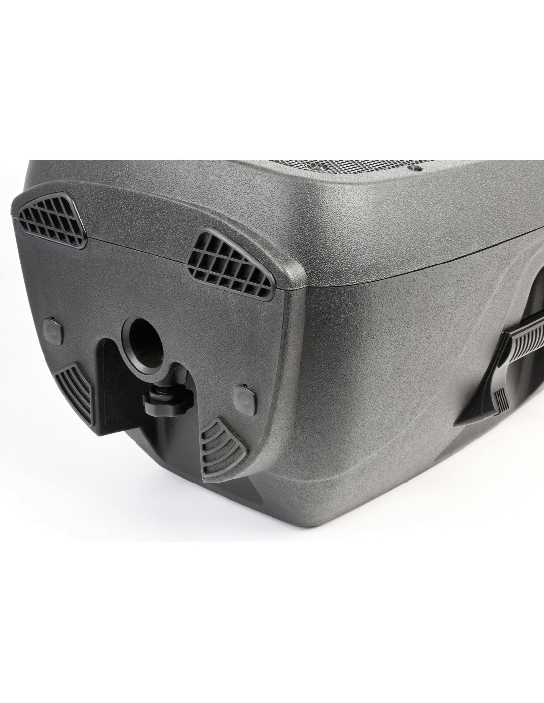 Bafle portatil PA profesional 12" 600W con mando a distancia, puerto USB integrado y lector SD Card para reproducir ficheros MP3. Este sistema "todo en uno" viene equipado con un receptor BT para reproducir en streaming y con UHF transmisores de petaca y mano que operan los dos a la vez. Se alimenta a corriente o con bateria incorporada de 12V que lo hace totalmente independiente. Incorpora asas de transporte y ruedas. En la parte trasera trae dos entradas mas para microfonos de cable con efecto echo para todos micros, entrada AUX linea, controles de tono etc. Este sistema completo es indispensable en cualquier evento donde se necesite musica..