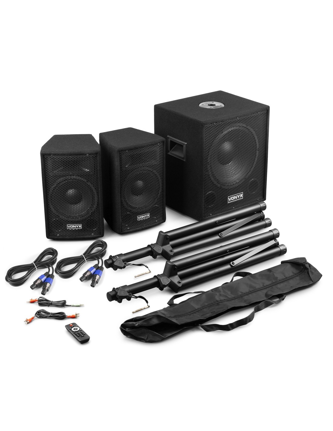 El VX0812BT es un potente juego de altavoces plug & play que ofrece un audio dinámico cristalino en combinación con unos graves potentes. Este conjunto compacto es fácil de configurar y fácil de transportar. Incluye un subwoofer de 12'' y dos altavoces satélite de 8'' con agudos piezo. El receptor BT incorporado le permite simplemente transmitir su música de forma inalámbrica desde su smartphone o puede usar el reproductor de MP3 incorporado con ranuras USB y SD. Este conjunto de altavoces activos es adecuado para DJ móviles, espectáculos de karaoke, espectáculos de autocine, presentaciones, etc.